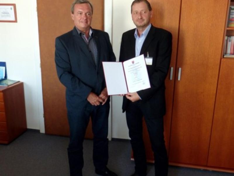 Odovzdávanie osvedčenia spoločnosti TANAX TRUCKS, a.s. BratislavaDňa 26. júla 2016 riaditeľ úradu Ing. Emil KOŠÚT odovzdal Osvedčenie o zhode systému…