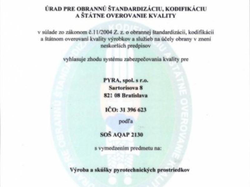 Dňa 25. septembra 2013 bolo zverejnené vo Vestníku MOSR čiastka 70/2013 oznámenie ÚOŠKŠOK Trenčín o schválení SOŠ AQAP 2310…