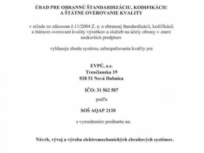 Odbor štátneho overovania kvality na základe zmluvy medzi Úradom pre obrannú štandardizáciu, kodifikáciu a štátne…