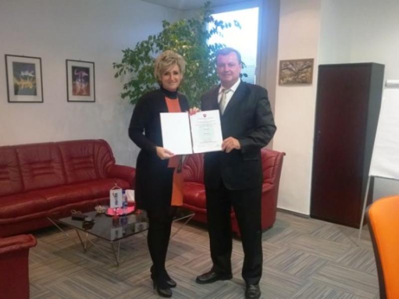 Odovzdávanie osvedčenia o zhode spoločnosti MSM Martin, s.r.o. Nováky, prevádzka Banská Bystrica