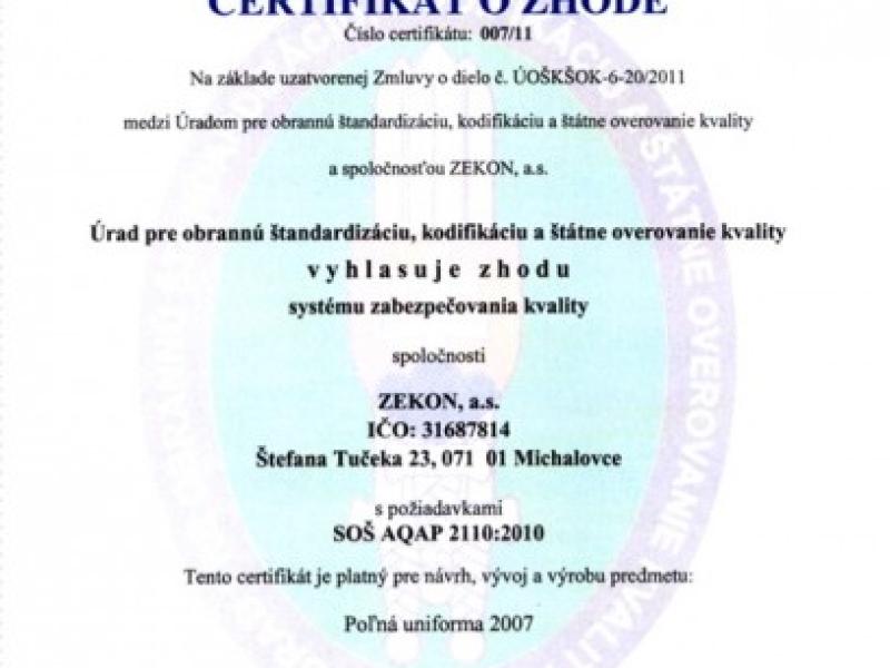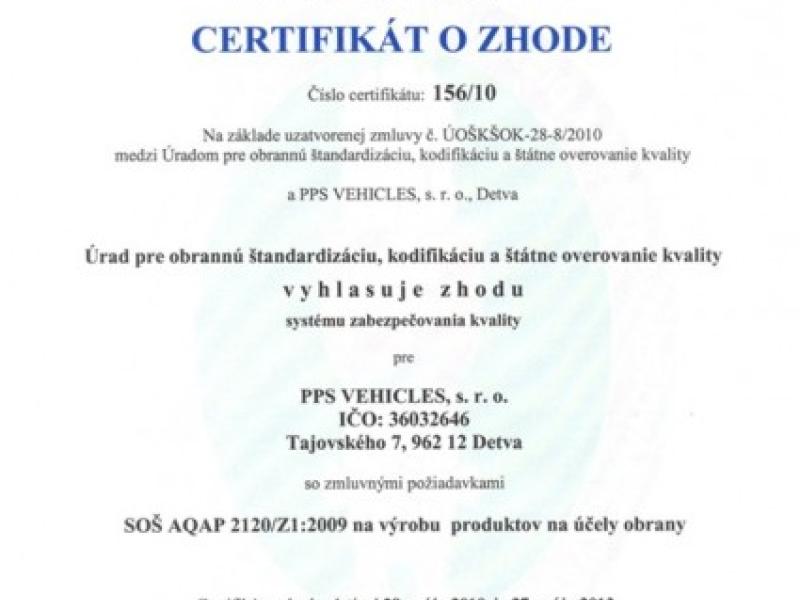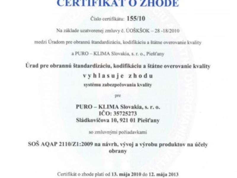 Dňa 5. mája 2010 riaditeľ Úradu pre obrannú štandardizáciu, kodifikáciu a štátne overovanie kvality…