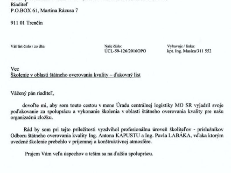 Výkon štátneho overovania kvality v spoločnosti STRAŽAN, s.r.o., BratislavaDňa 27. júla 2016 vykonal zástupca Úradu pre obrannú štandardizáciu,…